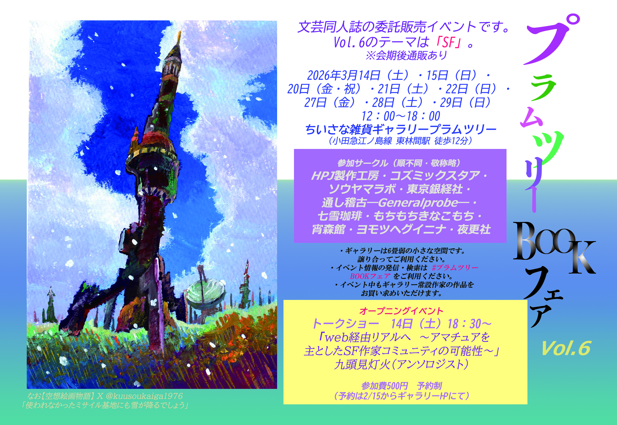 3月14日(土)~29日(日)金土日開催の「プラムツリーBOOKフェア Vol.6 テーマ・SF」の参加サークルは以下の通りです(順不同・敬称略)
