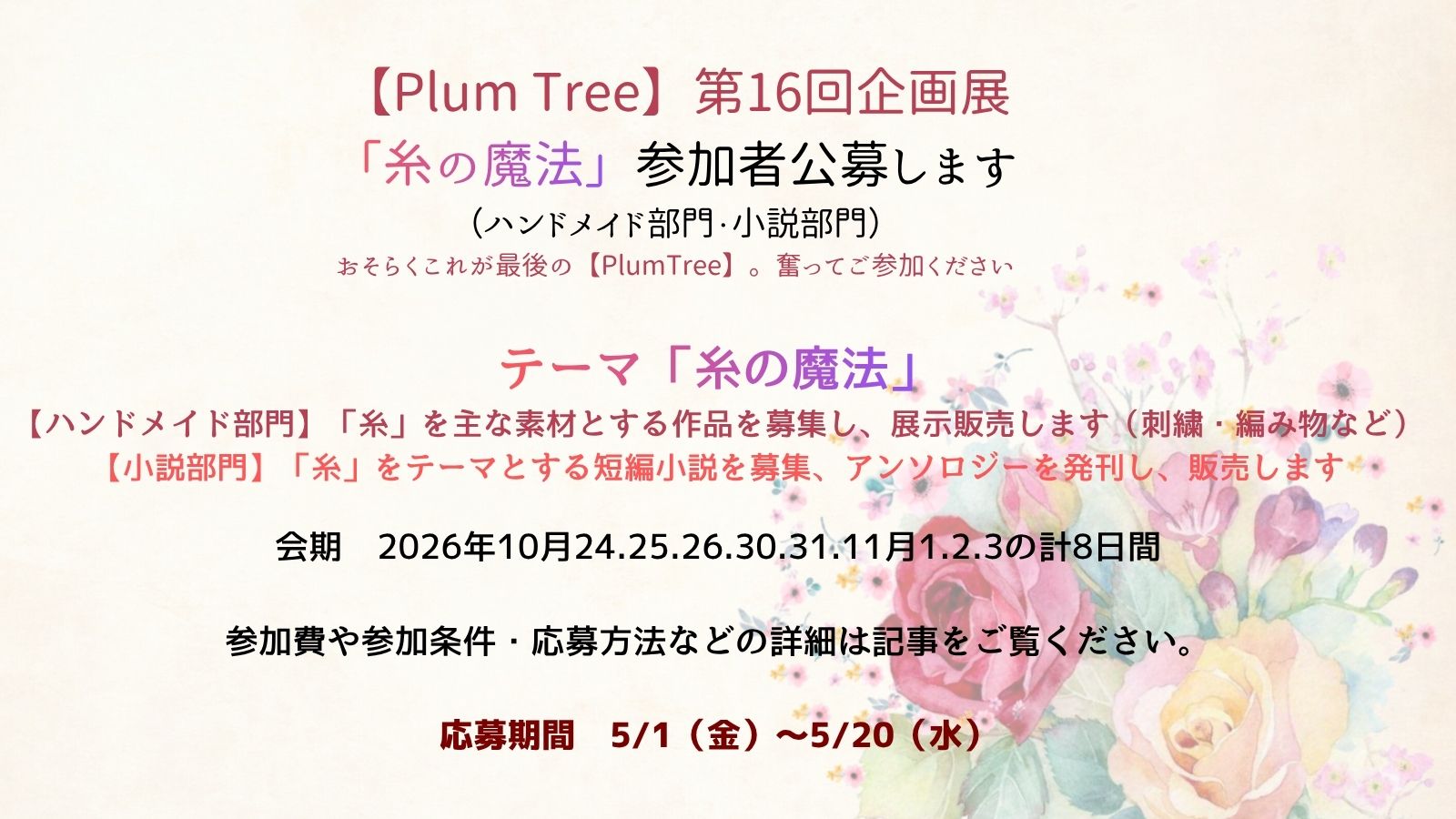 【Plum Tree】第16回企画展「糸の魔法」の参加者を公募します。